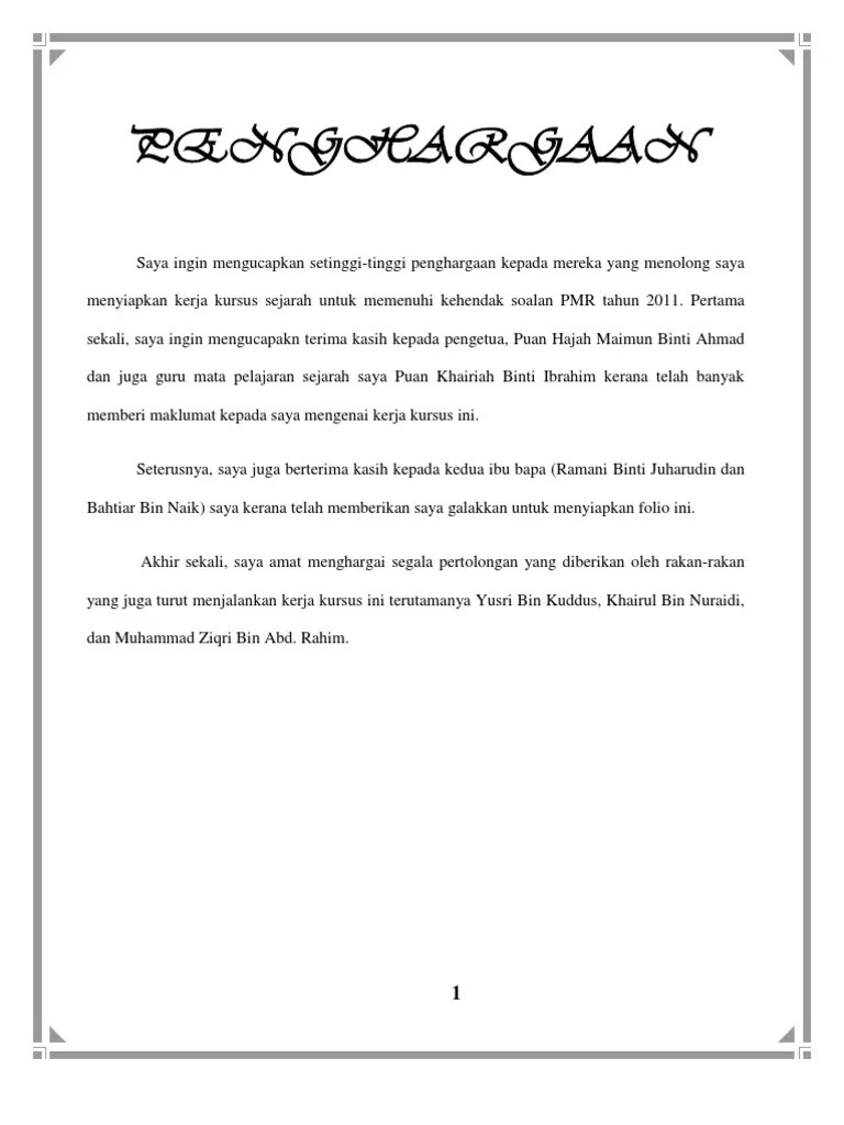Penghargaan Folio Sejarah / Folio Sejarah 2 Pdf. Contoh assignment penghargaan contoh m dubai burj khalifas. Penghargaan contoh objektif kajian contoh kaedah kajian contoh hasil kajian contoh 1 rumusan.
